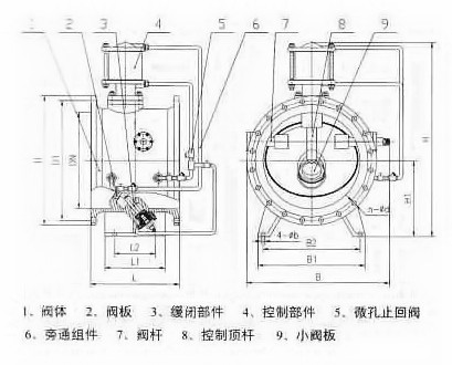 活塞式管力® 阀主要由阀体,大阀瓣,小阀瓣,阀杆,调节杆,主控缸,旁通阀,弹簧,缓闭活塞等组成,阀门的启闭由输送介质驱动,与水泵自动联锁,无需人员外力操作,当水泵启动后,水压通过进口旁通管进入控制下腔,大阀瓣在进口介质作用下,连同小阀瓣一同缓慢开启,开阀速度可根据工况要求调节,当水泵关闭时,阀门进品介质失压,大阀瓣在自力作用下自动关闭 在线观看香蕉视频,截止了70-80%的水流介质,同时,一部份回流水通过旁通阀进入控制缸上腔,推动控制杆下行,关闭小阀瓣至完全切断介质,关闭时间可通过旁通阀调节来实现,使水锤峰值控制在规定范围内。
