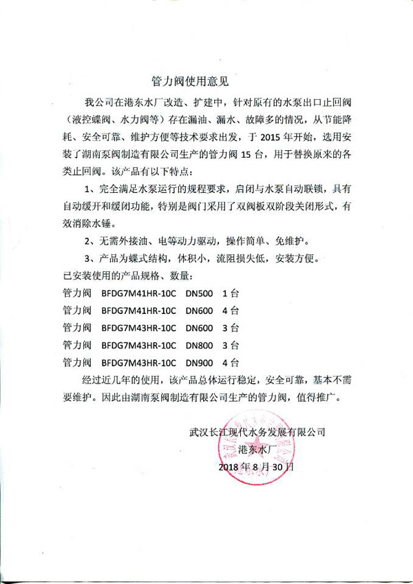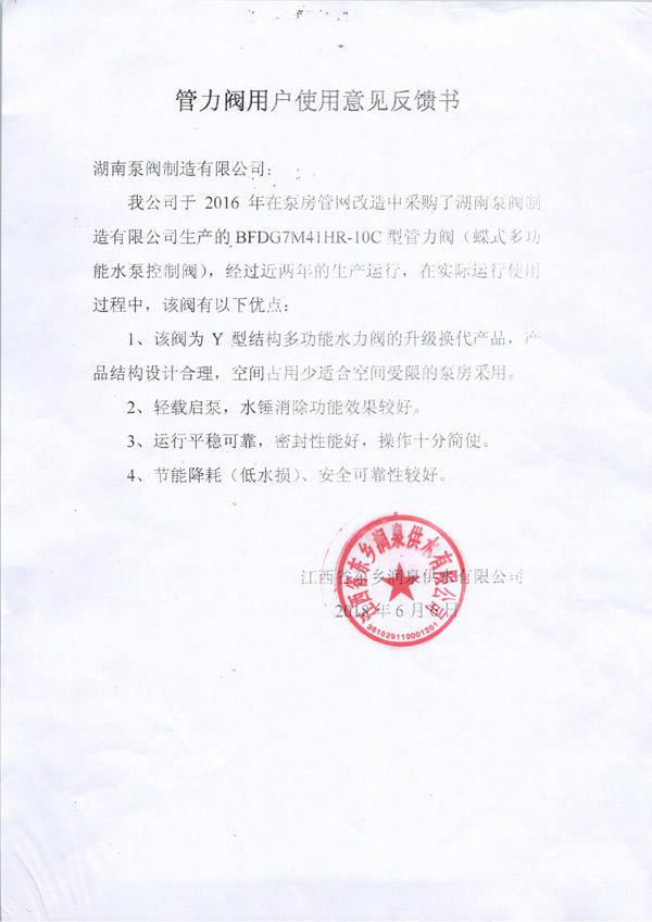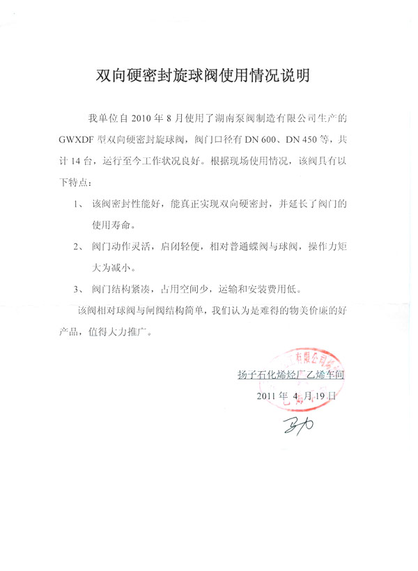 阜康工业园旋球阀用户使用意见书 东莞市松山湖天地环科税务公司管力阀 国电宝鸡第二发电有限公司用户意见
